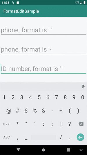 格式化编辑的需求一般是从编辑手机号开始的,UI 给出的效果不是11个连续的数字,而是采用3、4、4的形式,每段中间会空一个字符。在技术实现的时候,一般会自定义一个控件 TelEditText 实现功能,随着项目迭代,格式化编辑的需求可能会增加,比如说身份证号、自定义的优惠券码等,这个时候再给每种情况自定义一个控件就没必要了,通过一个控件实现多种格式化编辑需求是更好的方案。